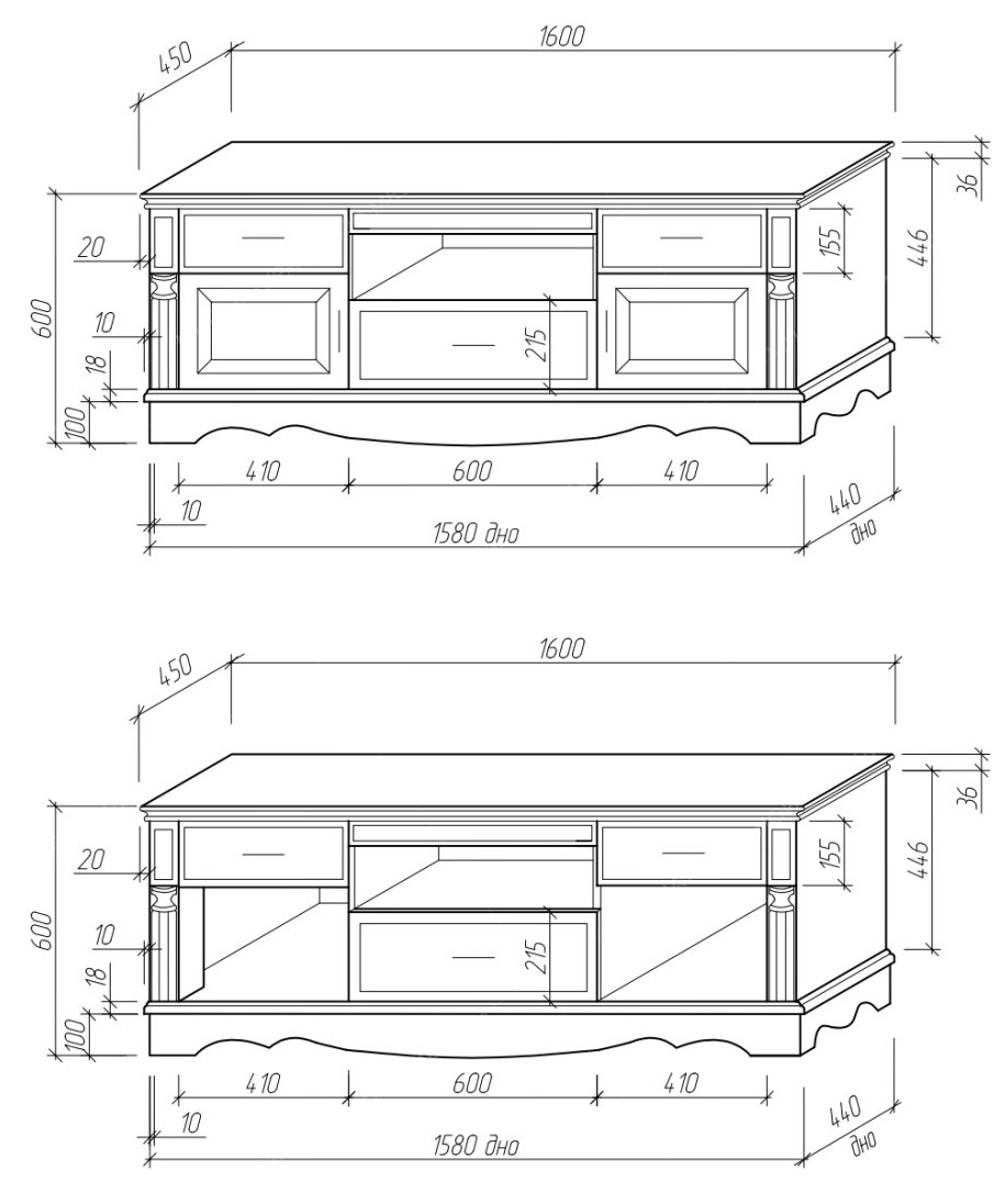 • Задняя стенка: оргалит (без доплаты), фанера (с доплатой).