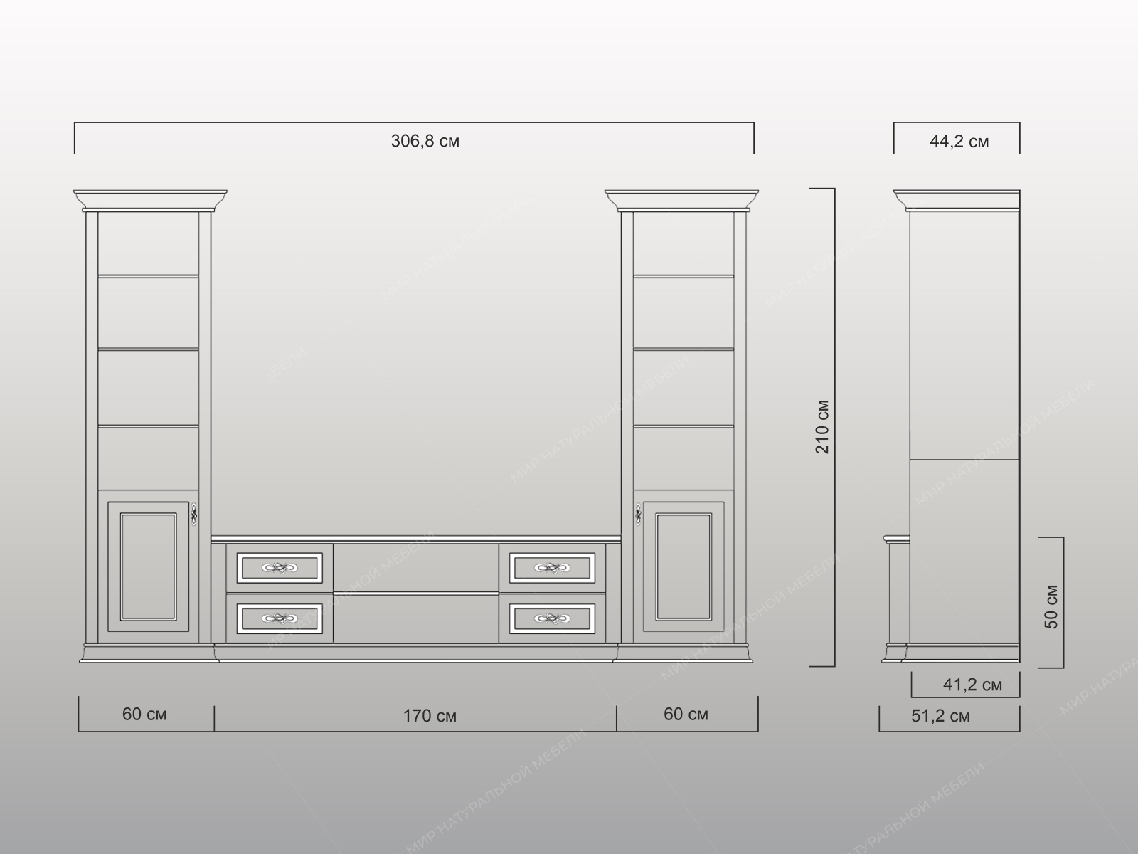 • Ширина - 60+170+60 см