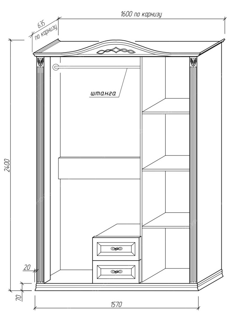 • Материал: щит мебельный сращенный (класс Экстра, не тоньше 18 мм).