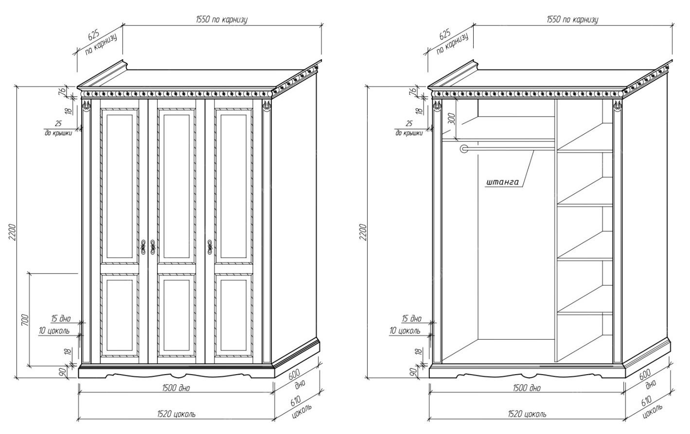 • Задняя стенка: оргалит (без доплаты), фанера (с доплатой).