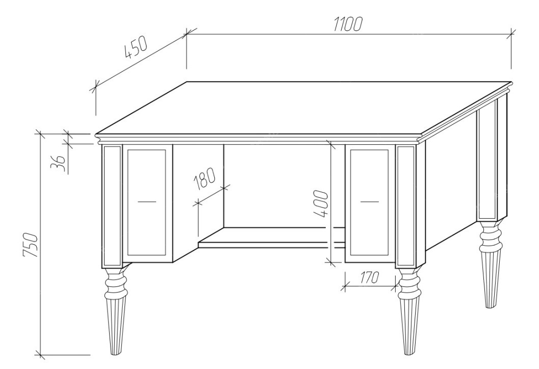 • Материал: щит мебельный сращенный (класс Экстра, не тоньше 18 мм).
