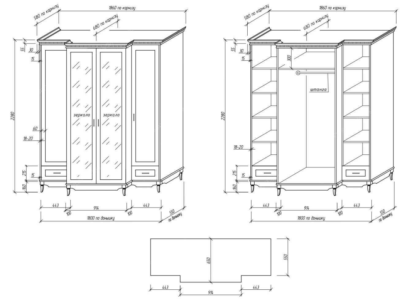 • Фурнитура: скрытого монтажа - Italiana Ferramenta, Permo (производство - Италия).