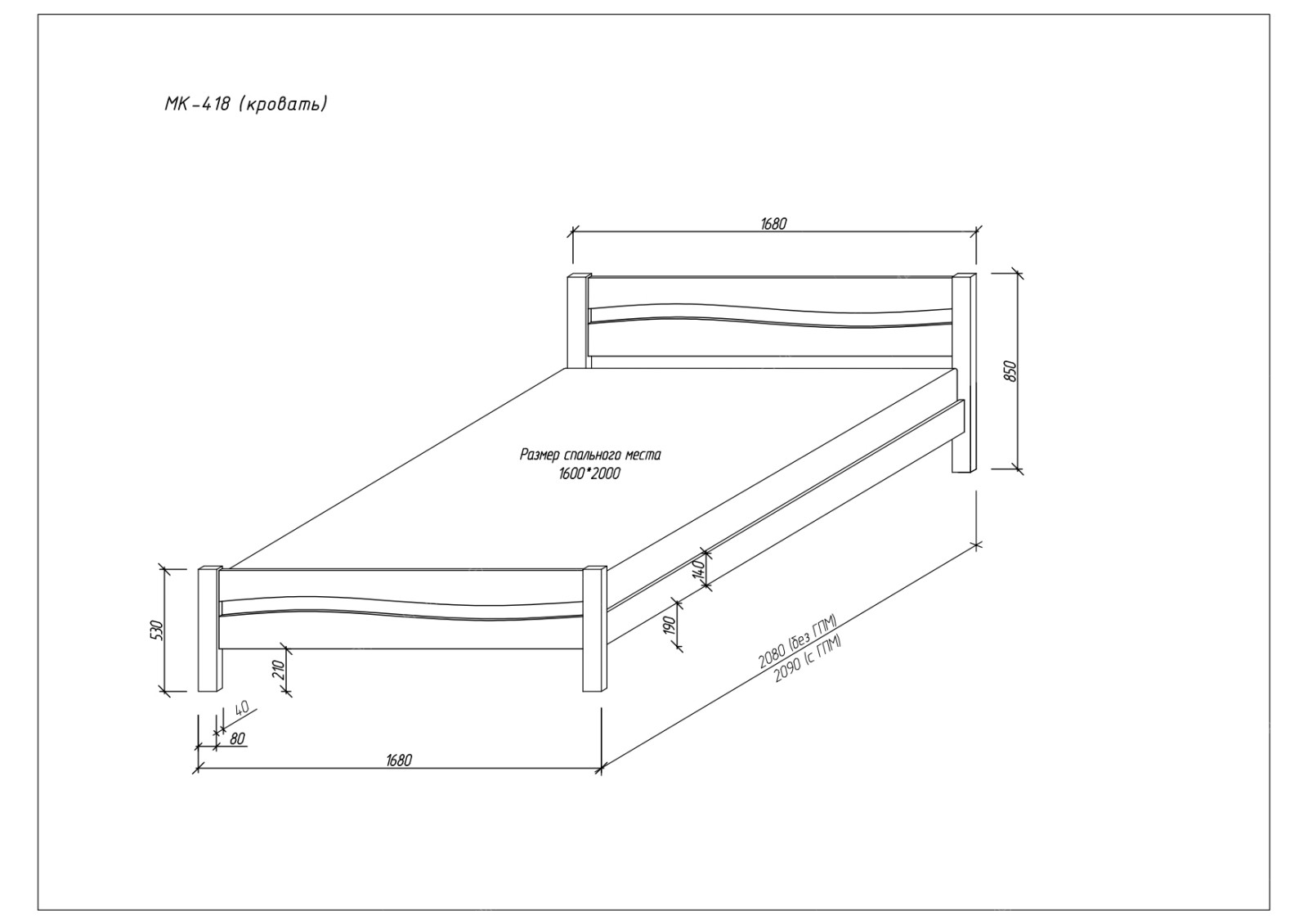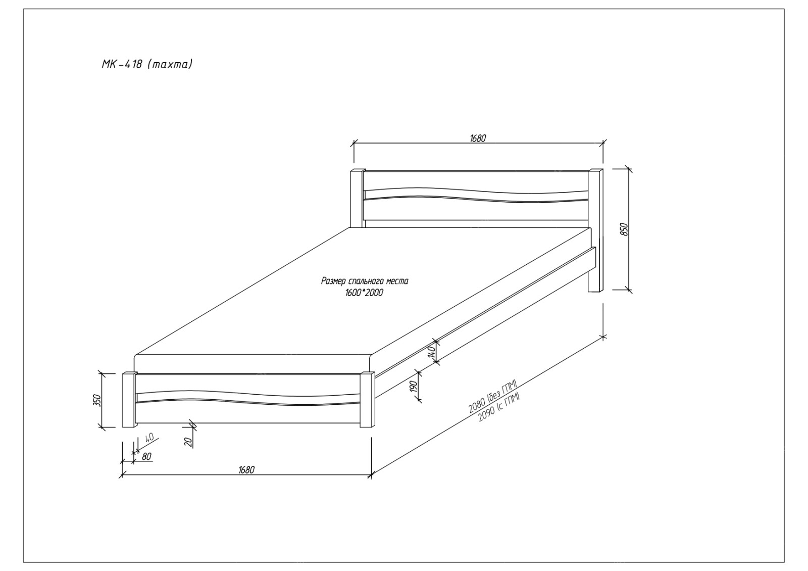 ВАЖНО! - габариты кровати больше размера спального места!