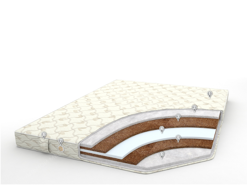 • Внутреннее наполнение - холкон (30 мм) + кокосовая койра (20 мм) + ППУ (20 мм) + кокосовая койра (20 мм) + холкон (30 мм)