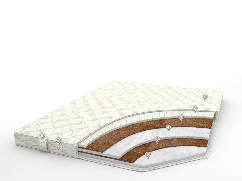 • Внутреннее наполнение - латекс (20 мм) + кокосовая койра (10 мм) + холкон (20 мм) + кокосовая койра (10 мм) + холкон (20 мм)