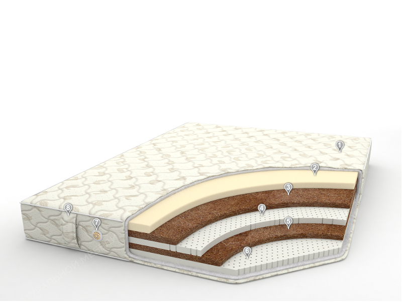 • Внутреннее наполнение - мемори форм (40 мм) + кокосовая койра (30 мм) + латекс (30 мм) + кокосовая койра (30 мм) + латекс (30 мм)