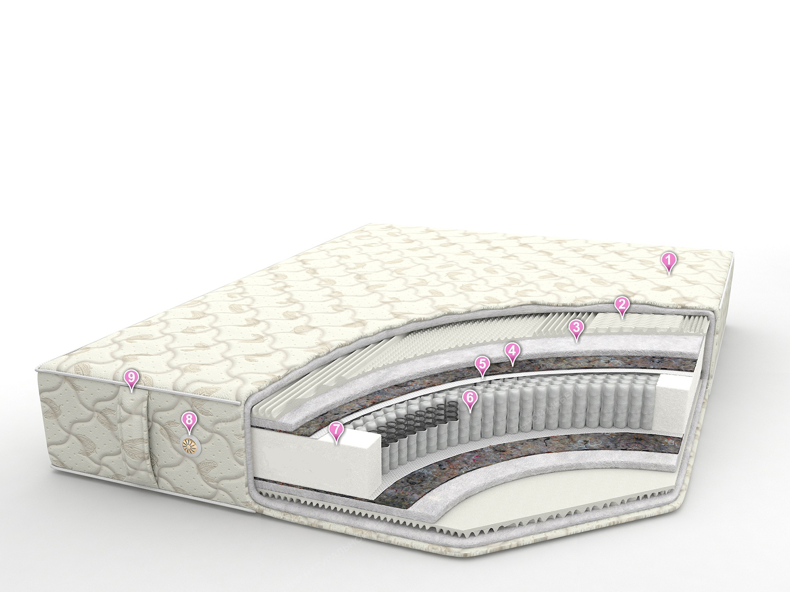 • Внутреннее наполнение - латекс семизональный 30мм. + холкон 20мм. + войлок + спанбонд/спанбонд + войлок + холкон 20мм. + латекс семизональный 30мм.