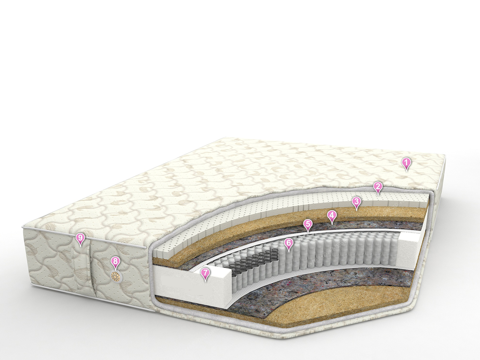 • Внутреннее наполнение - латекс семизональный 30 мм. + сизаль 20 мм. + войлок + спанбонд/спанбонд + войлок + сизаль 20 мм.