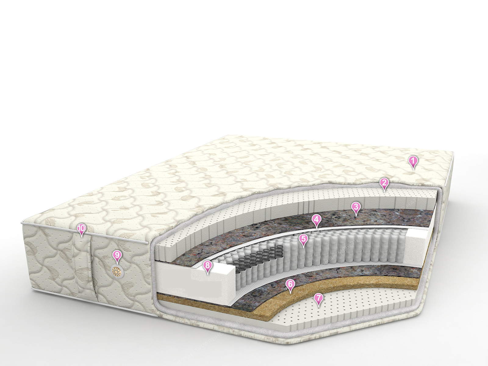• Внутреннее наполнение - латекс 60 мм. + войлок + спанбонд/спанбонд + войлок + сизаль 30 мм. + латекс семизональный 30 мм.
