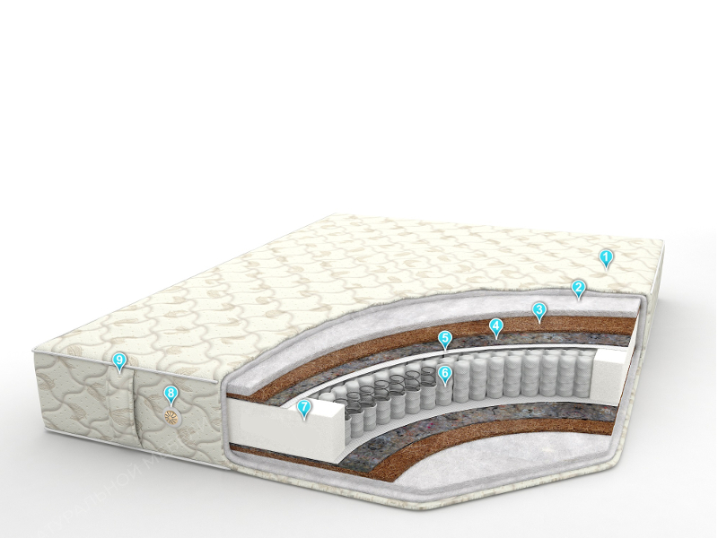 • Внутреннее наполнение - холкон 20мм. + кокосовая койра 10мм. + войлок + кокосовая койра 10мм. + холкон 20мм.