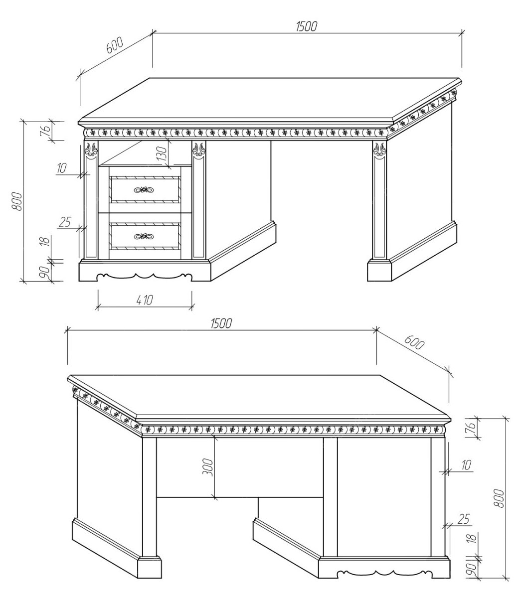 • Материал: щит мебельный сращенный (класс Экстра, не тоньше 18 мм).