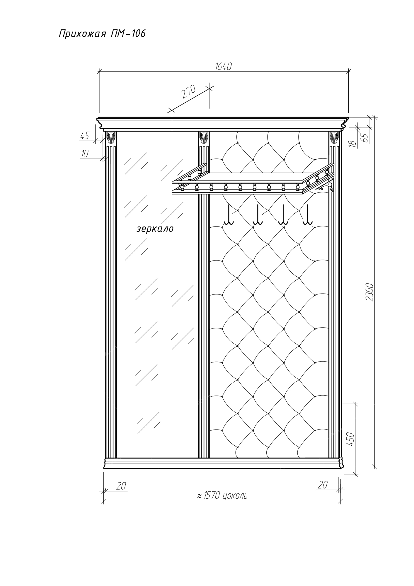 общие габариты изделий коллекции Прихожих ПМ сверху шире указанного размера на 9 см за счет отступа верхнего багета!