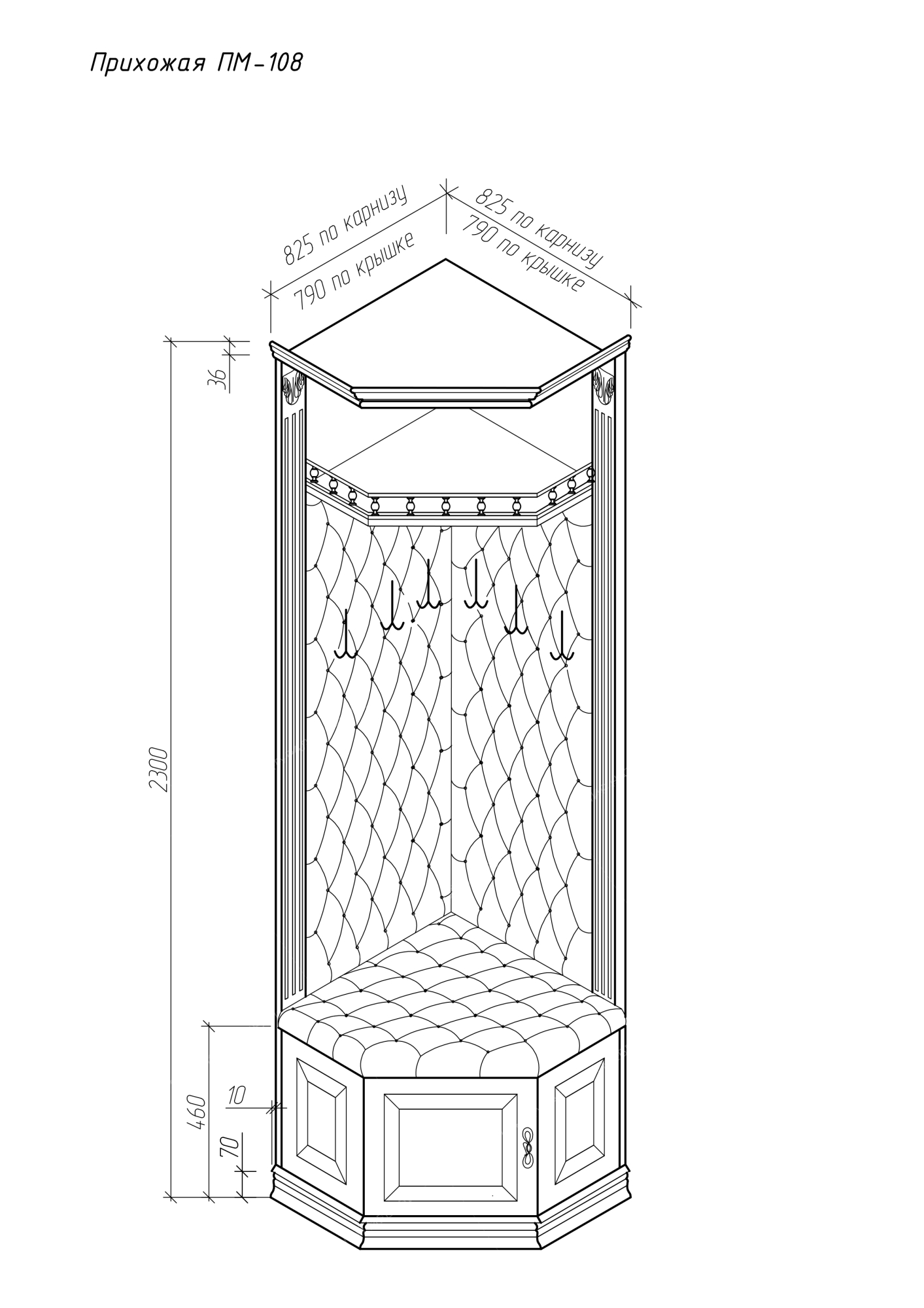 общие габариты изделий коллекции Прихожих ПМ сверху шире указанного размера на 9 см за счет отступа верхнего багета!