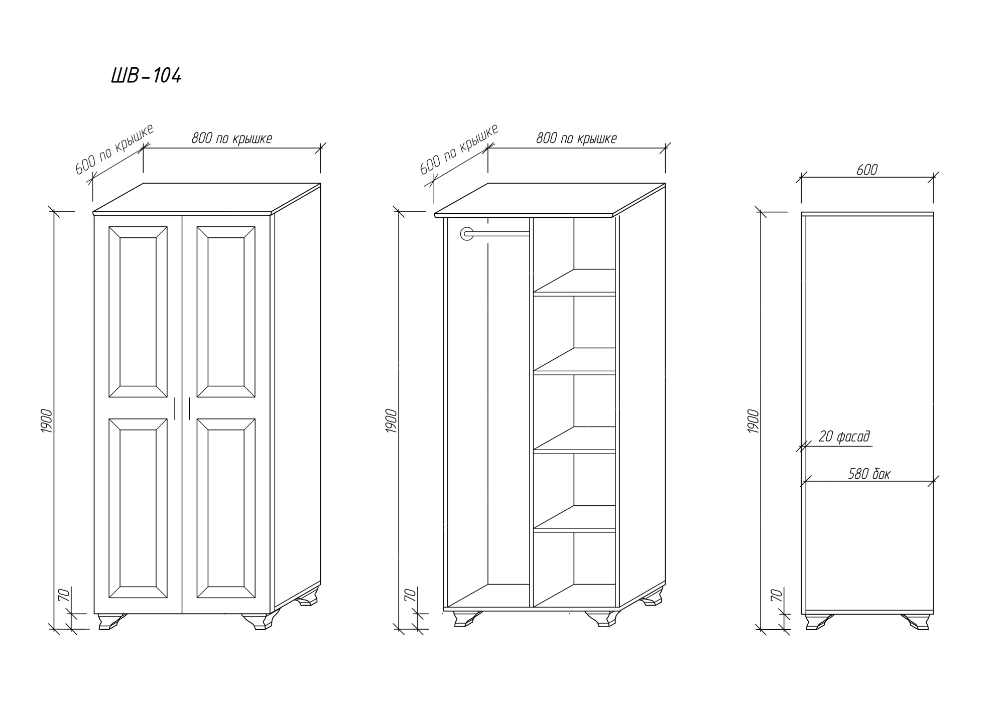 • Задняя стенка: оргалит (без доплаты), фанера (с доплатой).
