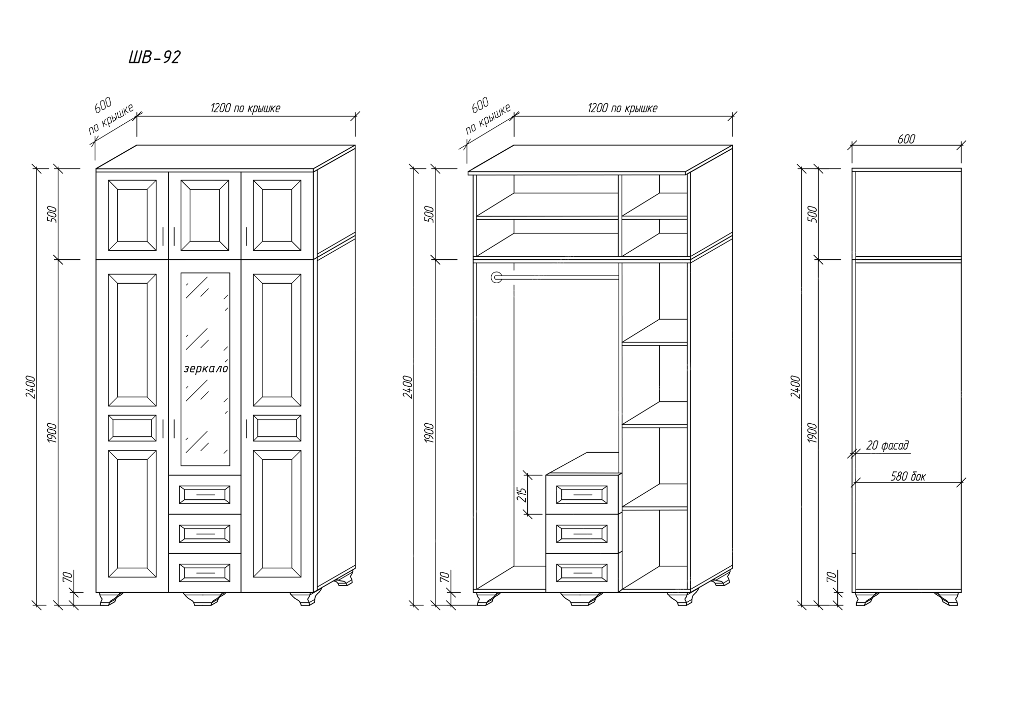 • Задняя стенка: оргалит (без доплаты), фанера (с доплатой).